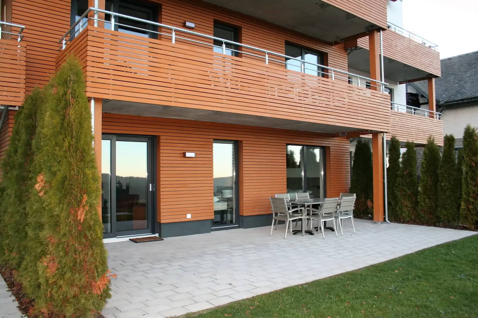 Die elegante Kombination aus Holz und warmen Tönen verschafft eine angenehme Atmosphäre – perfekt für euren Urlaub im Sauerland. Von hier aus könnt ihr die umliegende Natur genießen, egal ob beim Skifahren, Wandern oder einfach beim Entspannen.